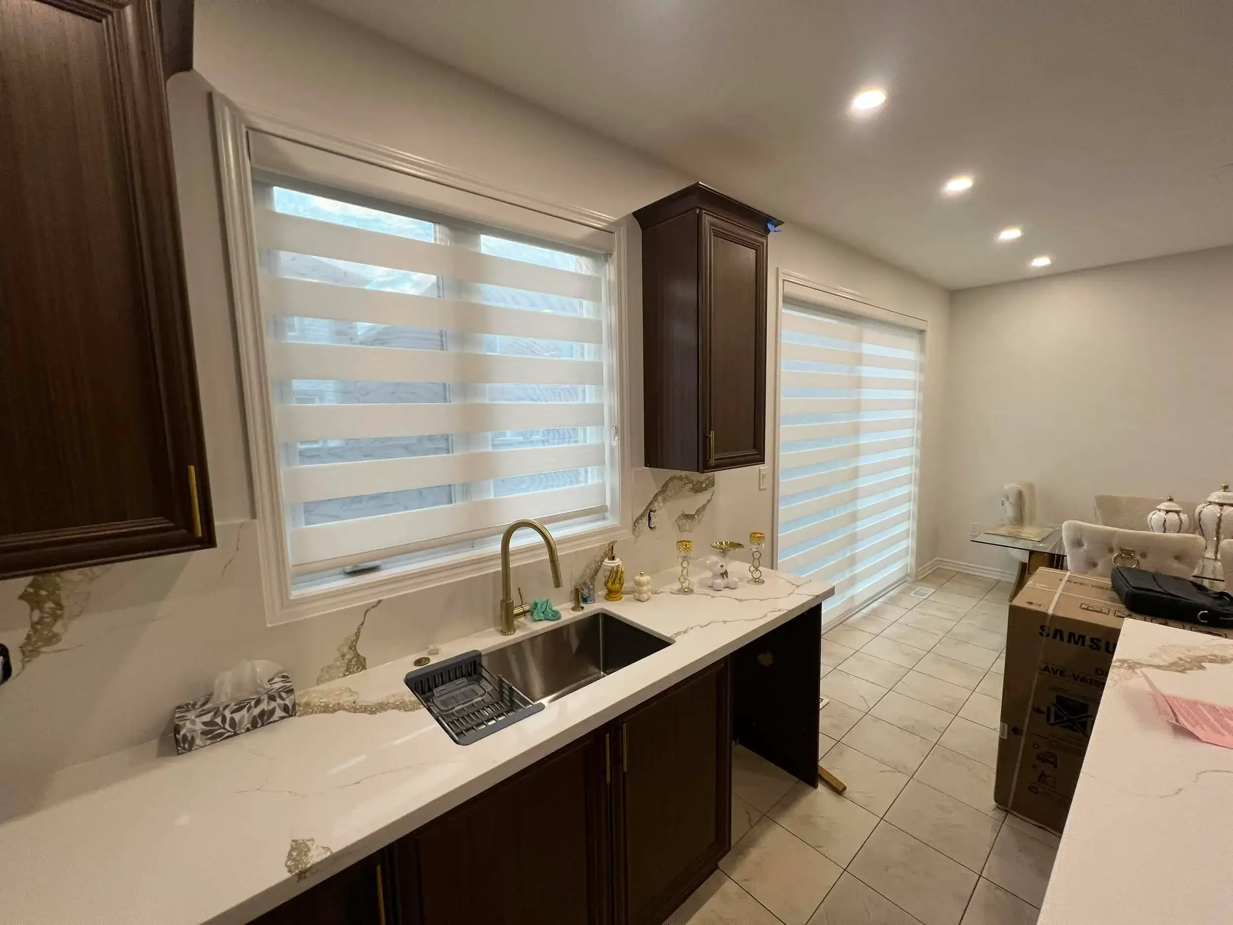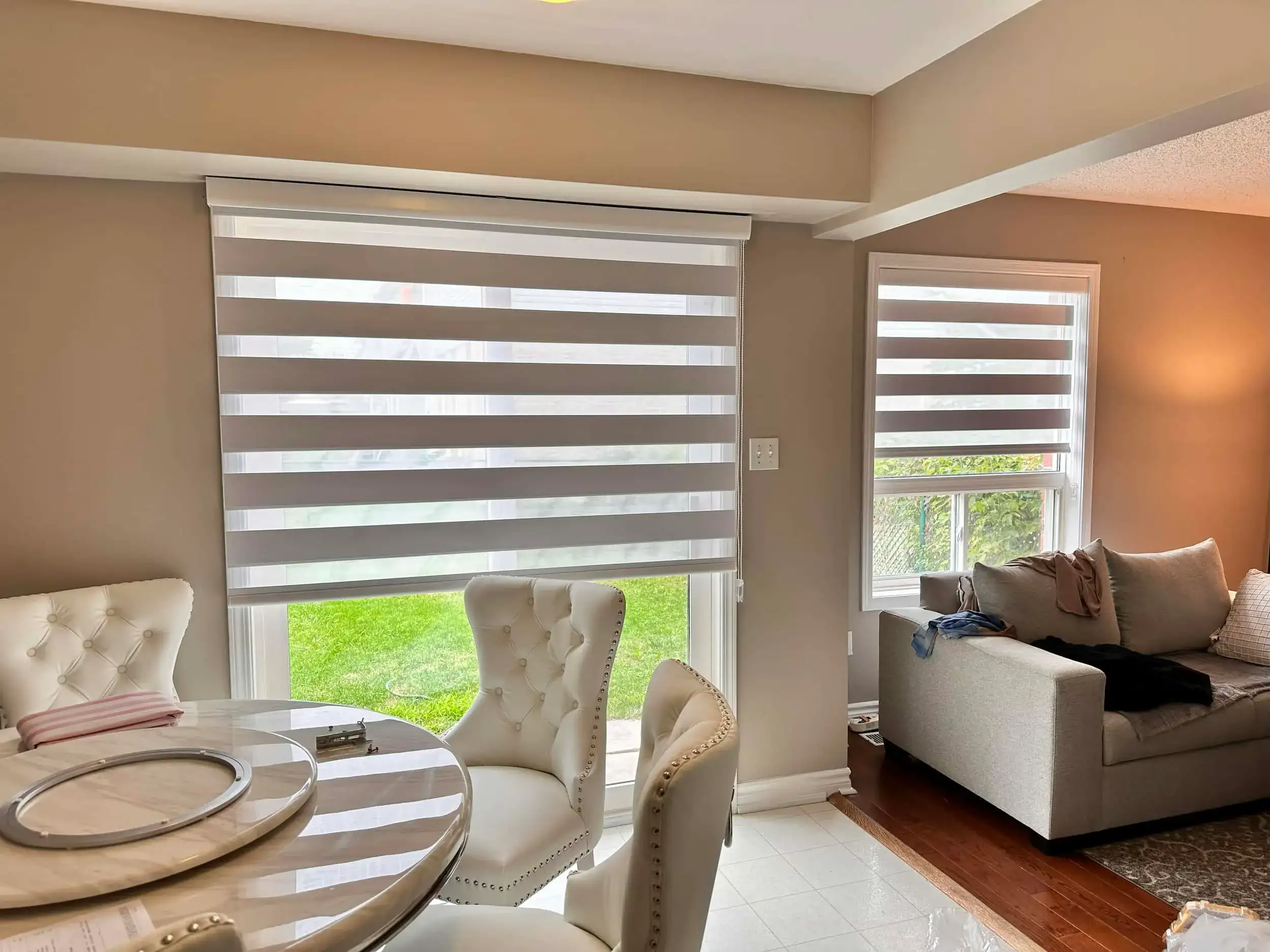 Each zebra blind is made from two coordinated fabric layers so you can switch between soft daylight and full privacy with one simple adjustment. We measure precisely, offer motorized upgrades, and finish every installation to a high standard.
